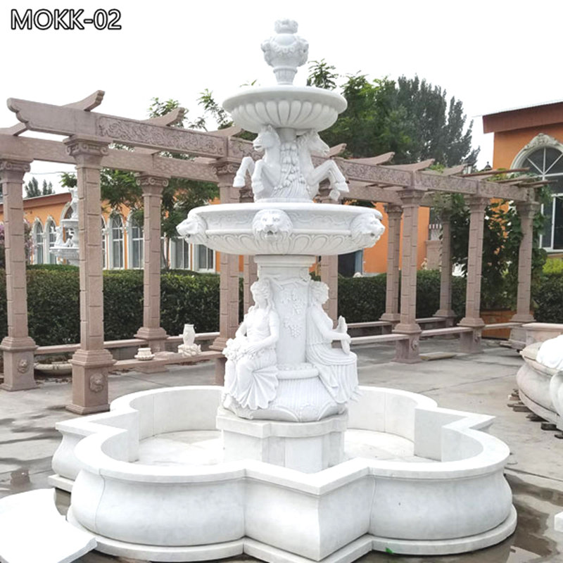 The white marble water fountain is designed by our factory. It is hand-carved by our top masters. The exquisite figure and horse statues add more art value to this 2-tier marble fountain. If you like it, please contact us for more details.